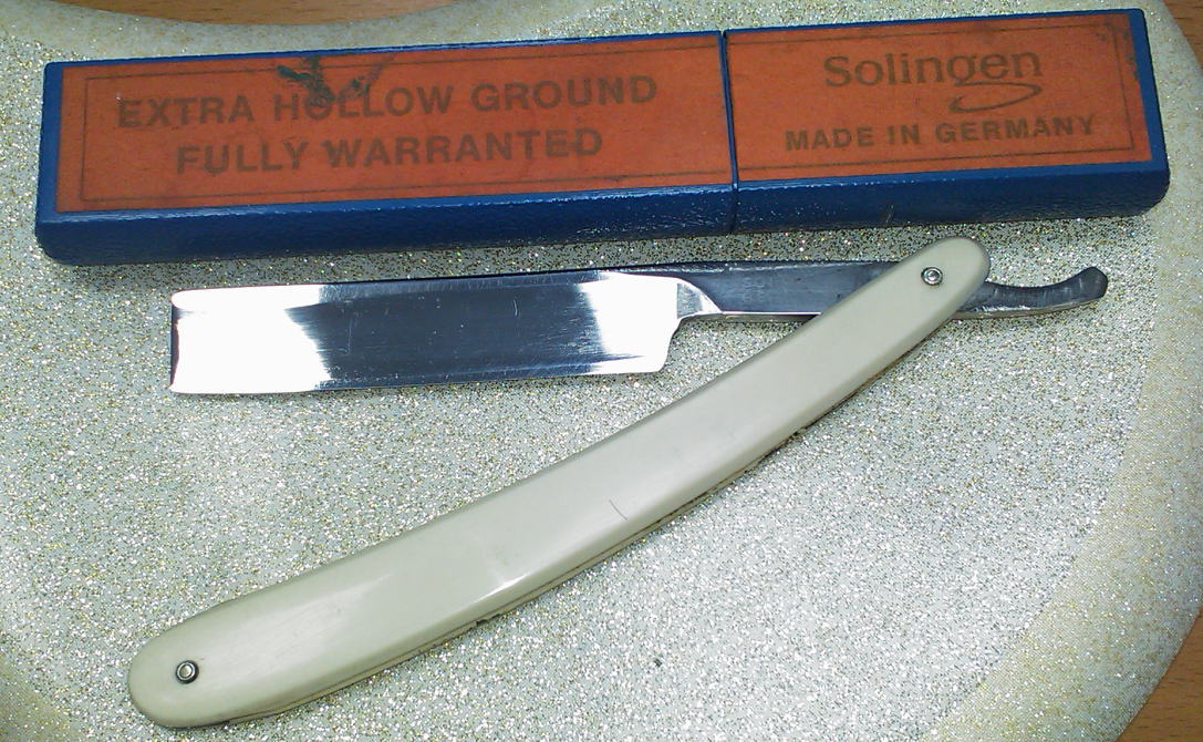 Принесли делать бритву. Сначала значения ей не придал. Начал делать, но когда в процессе работы понял, что делать я буду её бесконечно долго, задумался - что-то не так. Подумал малость и пришёл к выводу - Пакистан это! Металл ещё туда-сюда (правда вилочно-ложечный). Ручка внешне - ничего. Но заявленный на коробке EXTRA HOLLOW GROUND действительно "Экстра", потому что... его практически нет. Точил безумно долго, выправлял, исправлял. И только когда уже доточил (о слава тебе всемогущественный аллах! При ширине 7/8 инча толщина спинки 3.6 мм! Померял нормальные бритвы - не меньше 4,5мм при такой ширине! Пластик ручки ненормально мягкий, полотно бритвы было со странными узорами (полирнул - более-менее убрал) и коробка из дешёвого хрупкого пластика. Золинген - столица Пакистана, это единственная столица, которая находится в чужой стране! Ремонт опасных бритв, звонить с 11-00 до 23-00, +79267729357, (viber, whats app, telegram, VK), спросить Олега.