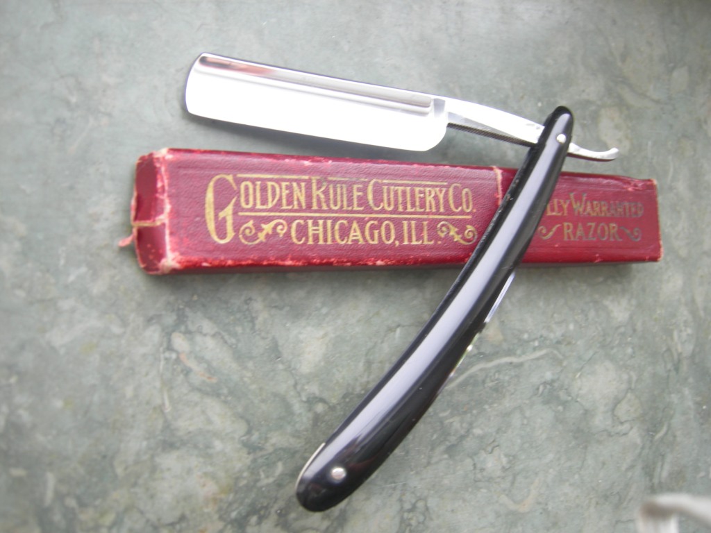 Продам: Golden Rule Cultery co Chicago , бритва из города ганкстеров  , дефект ручки видно на фото, но держится бодрячком, думаю если использовать бритву по прямому назначению, то прослужит долго.