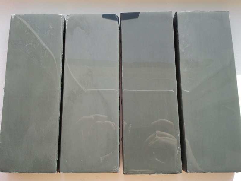 1.1) Гуанси Выбранные. Гуанси большого размера, но очень однородные, будут выдавать до 15000 "япона-грит", самое то для бритв, цена немного выше так, как камни высокого качества - редкость!!! размер - 200мм×68-70мм×30мм толщина может быть больше! вес - может достигать 1400 грамм цена - 2500 рублей! (Стоимость без пересыла 2100 рублей) наличие - проданы Spoiler Show Фото с первой стороны, поверхность мокрая.