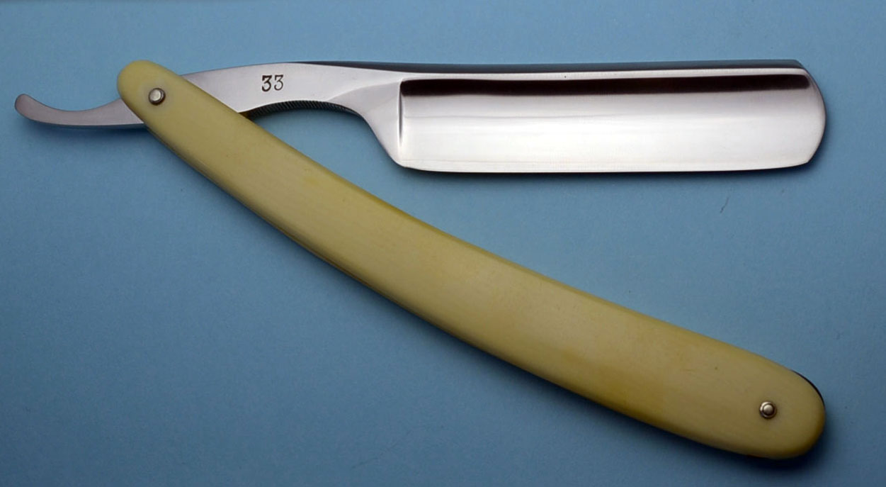 Сведения о производителе: http://britva.ru/forum/viewtopic.php?f= ... tti#p54359" onclick="window.open(this.href);return false; Ручка из целлулоида, в отличном состоянии. Обушок граненый. Заточена и полностью готова к бритью. Ширина полотна 19.5 мм, толщина в обушке 5 мм.