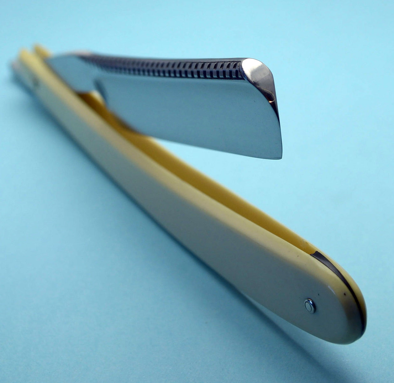 Надпись на ручке: TALMALIN Ручка из целлулоида, в хорошем состоянии. Обушок с узором - видно на фото. Особо хочу отметить SILVER STEEL - очень уважаю широких немцев из этой стали. Заточена и полностью готова к бритью. Ширина полотна 19 мм, толщина в обушке 5 мм. Spoiler Show