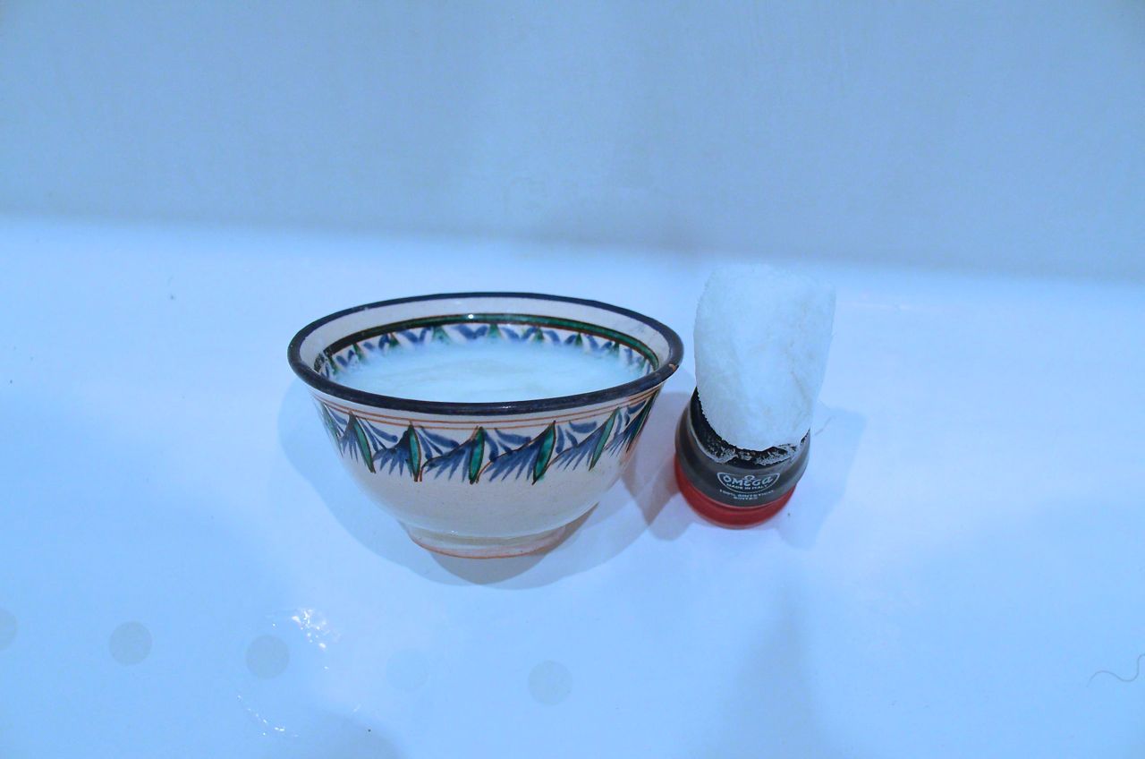 собрал мыло на помазок из чашки на фото, взбил пену в другой, пена жырная и склизская (может диметикон?), в общем с бритьем все OK. "жалко" только, что хватит мне этого куска на много времени, не поэксперементируешь однако:)
