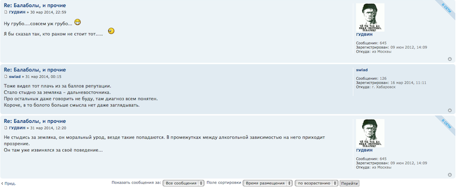 Ну и что ты этим хотел сказать? Как клоуны, ей богу. Одного зацепило, что кто то репу не так и не ему поднял. Другие пытаются столкнуть лбами два форума. Глупо и по детски. Неужели мозгов только на срач и троллинг хватает? Лучше бы направили свою энергию на то, чтобы наполнить форум полезной информацией и помогать новичкам. А то как ни зайдешь - одни объявления о продаже. Это форум о бритвах или барахолка? Или тут только избранным позволено свое мнение иметь? Можно сколько угодно надувать щеки от собственного величия и непогрешимости, вот только со стороны это выглядит уныло.