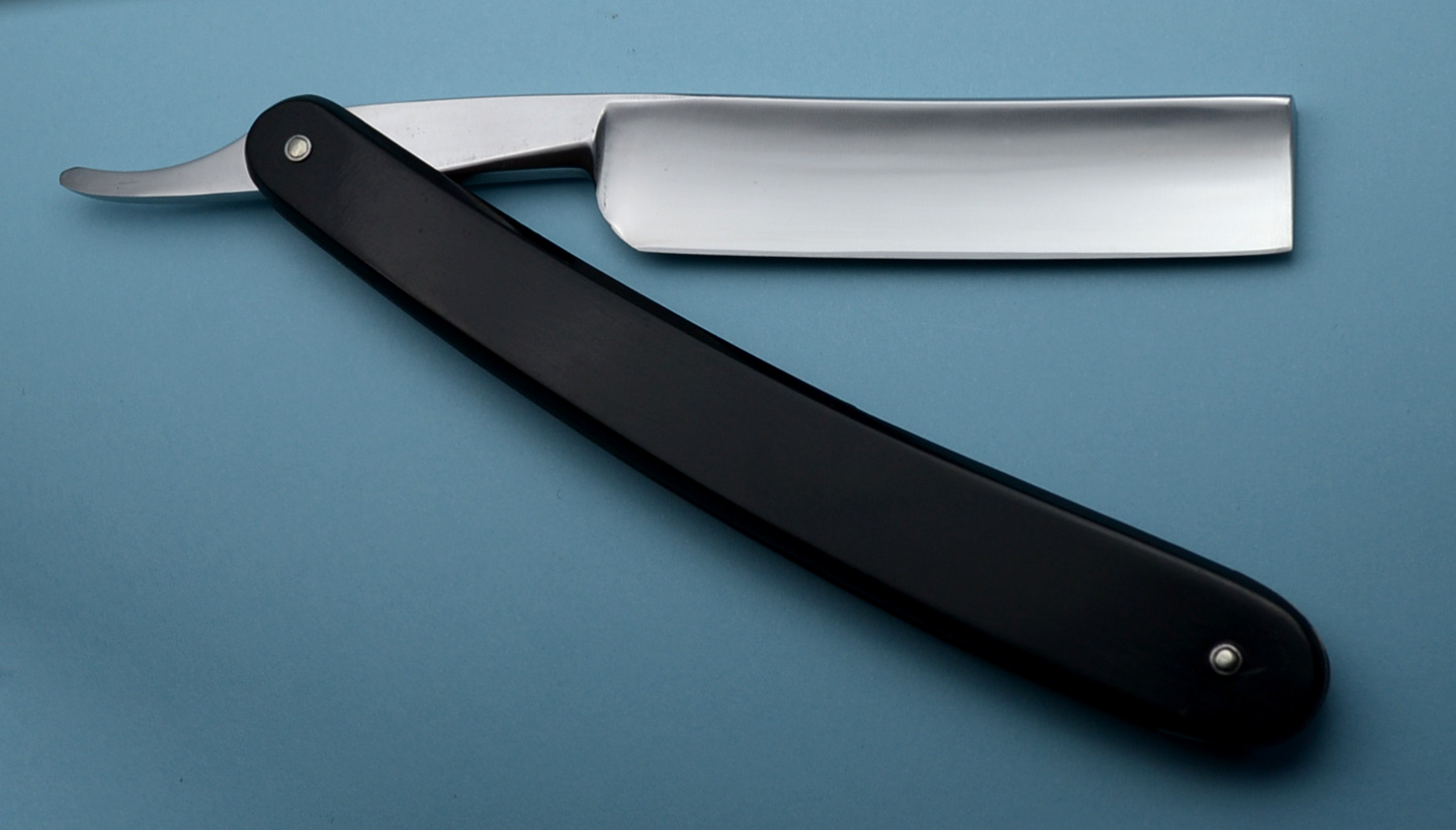 Сведения о производителе: http://britva.ru/forum/viewtopic.php?f= ... rson#p6373" onclick="window.open(this.href);return false; Ручка из черного рога, в отличном состоянии, клинышек - металл. Заточена и полностью готова к бритью. Ширина полотна 18 мм, толщина в обушке 5 мм.