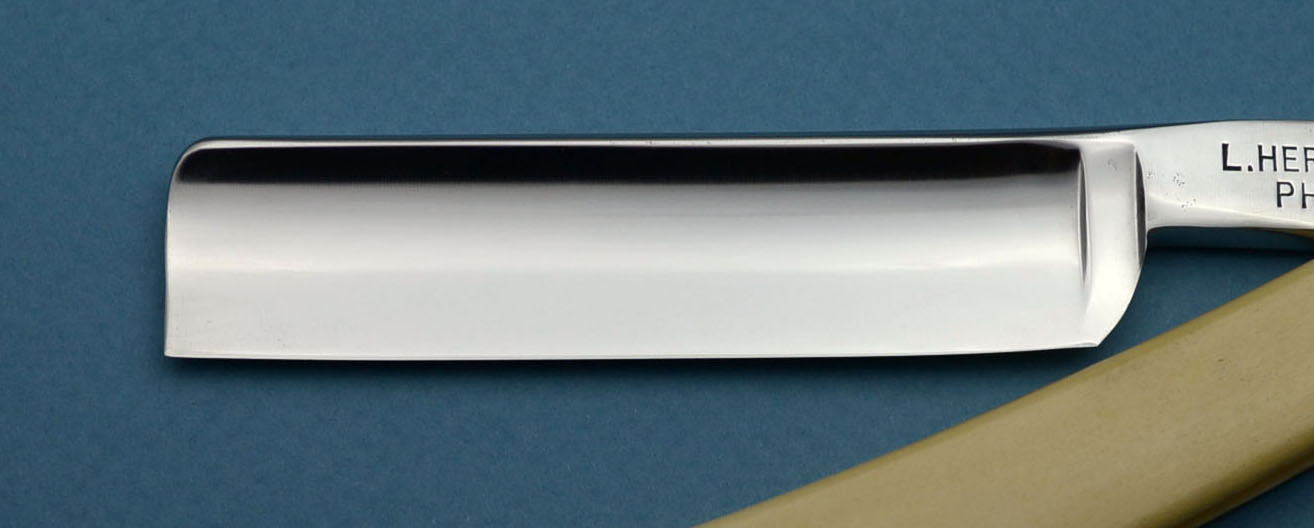 Насколько я понимаю, бритва изготовлена в Германии по заказу американской фирмы. Ручка из кости, в приличном состоянии. Заточена и полностью готова к бритью. Ширина полотна 19 мм, толщина в обушке 5 мм.