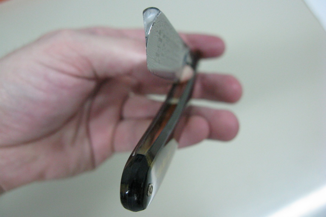 ERN- Es-Ex. Немецкая классика. Размер 6/8. Увесистая. Ручка новая - пластик "под янтарь". Заточена и промаслена для защиты. Прекрасно справляется с жесткой щетиной, а уж с мягкой и подавно.