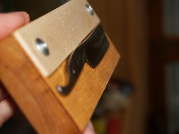 Магниты добыты из трупов жестких дисков. Долго думал чем их сверху закрыть. Железо потенциально может повредить бритву и здорово снижает силу магнитов. Кусок ламината или подобное - толсто, тоже не годится. В итоге вырезал кусок из кедрового шпона. Не знаю насколько это долговечно, но безопасно, эстетично и экологично ) И магниты через него магнитят так как надо. Не так здорово как напрямую фиг отдерешь) и достаточно сильно чтобы хорошо фиксировать. Если кто тоже полезет вскрывать HDD на магниты, дело это неблагодарное. Отцепить магнит от основания непросто, он приклеен. А сами эти магниты довольно хрупкие. Я в итоге сломал 2 из 5ти. Сейчас купить их не проблема. Муссолини харь псевдозаточкой. Типазаточник-параллельщик. Баблосгрёб.