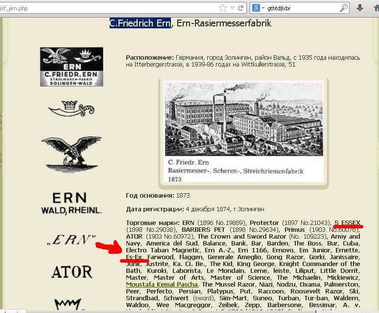 Re: Продам из коллекции ЗАТОЧЕННОЕПредставитель ERN - Es-Ex. Немецкая классика. Размер 6/8. Увесистая. Ручка новая - пластик "под янтарь". Небольшая патина (единственная) у обушка. Заточена всё там же и подготовлена к бритью. Прекрасно справляется с жесткой щетиной, а уж с мягкой и подавно. Отличная бритва...а других на форуме и не продают.
