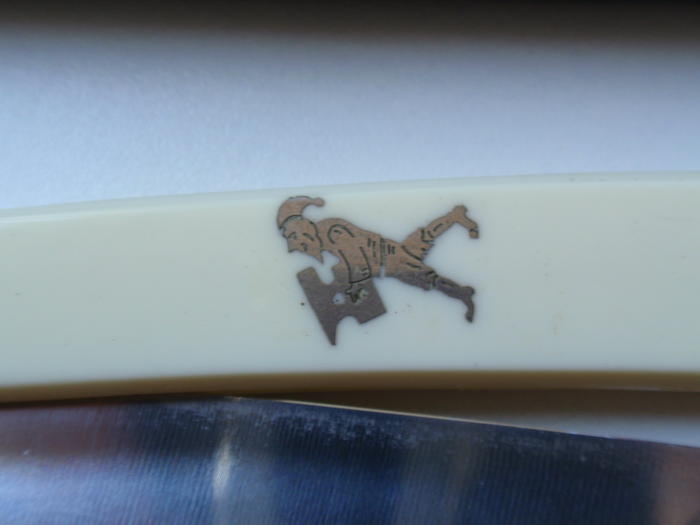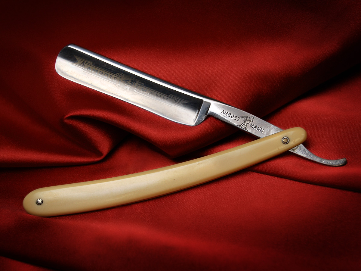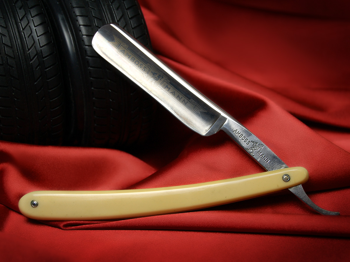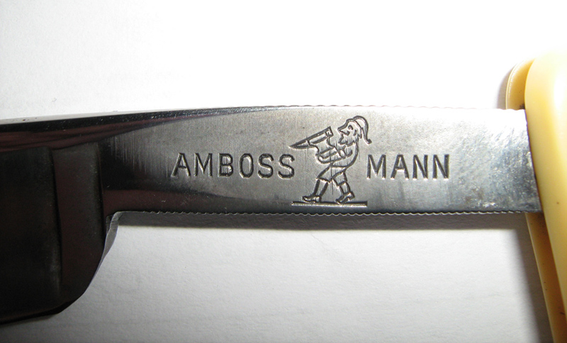 На сей раз опасная бритва досталась из антикварного магазина г. Минска. Теперь надо бы разузнать побольше о производителе итп. То, что 'Amboss' - наковальня, а 'Mann' - мужик, это понятно и по логотипу - мужик тащит наковальню (вообще-то похож на гнома, значит правильно будет "мужичёк тащит офигенную наковальню"  )