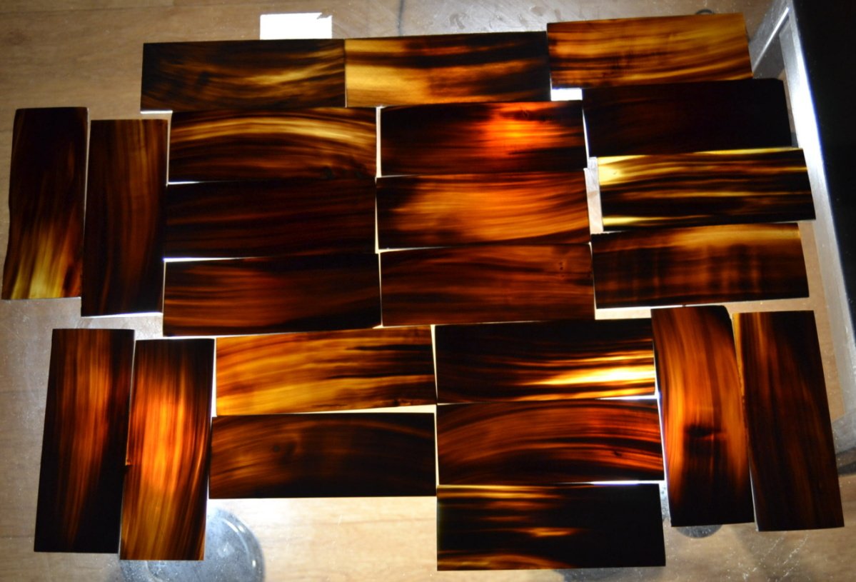 Почти все с незначительной белой пигментацией. Отполированы, но слабовато. Размер 125 *40*10 мм.