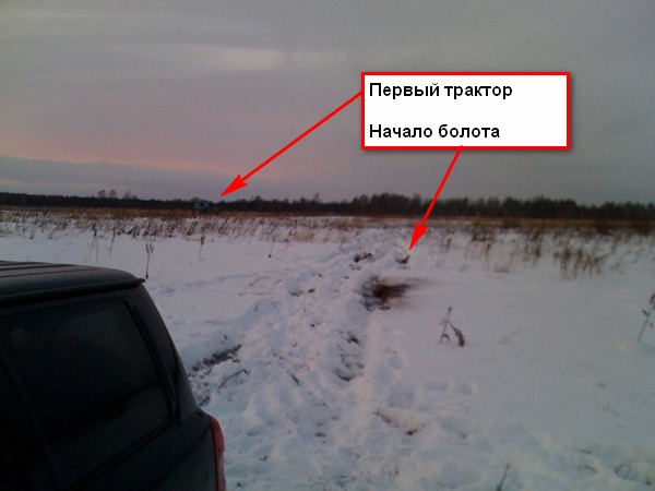 _______________________________________________________________________________ Байка про "чем круче джип тем дальше идти за трактором" оказалась правдой Несколько дней назад (это я в январе писал) меня пригласил друг в смоленскую область в деревенский дом и баню. Взял жипиэс проставил дорогу, оказалась достаточно прямой. Правда в одном месте, вроде как с дорогой была проблема, вернее ее нее было. Но это вроде как "направление" сокращало путь на 40 км. В день перед рождеством мы выехали. Приехали почти на место, дорога вроде кончилась. Была странная колея в половину моего колеса. фигня, проехали.. Сомнения начались закрадываться когда пришлось проходить речку в брод Проехали и ее. С другой стороны следов уже не было. Едем мы значит по полю, до населенного пункта осталось 7 км. Мы довольные как слоны, во типа, срезали. В результате 20ти минутной поездки по полю со снегом 50 см дорогу мы так и не нашли. Поехали по периметру, искали съезд. Поняли что найти не получается и поехали назад. Но не по своим следам, а наперерез. Когда начали буксовать колеса и в салоне воцарился запах болота сначала было весело. Еще через 10-15 метров я сел на пузо Ни вперед, ни назад. На улице -17, до ближайшей деревни километра 3.. Кстати я оценил свой GPS, портативный, непромокаемый, в карман положил и с собой. Все попытки выехать ничем не закончились. До кучи мы вдвоем замочили ноги.. Лопата год ездила без дела. Пригодилась. Пошли за трактором, деревня оказалась мертвая. До другой еще 3 км. Дошли до нее и до единственного фермера который там живет ,там трактора тоже нет. К счастью к нему приехали покупатели бычка забирать, они нас подвезли еще 7 км до более или менее большой деревни. Денег не взяли, сказали что я их этим обижу. За что им спасибо. Нашли тракториста, он пошел шаманить с трактором, танцы с бубном продолжались минут 30. Завелись - поехали. Приехали - трактор не смог доехать до машины метров 7, чуть сам не зарылся в болоте. Поехали за тросом, в результате его нашли. Типа вот она свобода - ага щас. Трактор буксует, попытки заехать ближе трактором, закончились колеёй в пол мера и чуть не посаженым в болото трактором. Сели мы в 12.00, к 18.00 подъехал второй трактор. Машина вмерзла в болото совсем конкретно. Первые 3 попытки закончились ничем. Сцепленные друг за друга трактора закапывались и никак нас не могли сдернуть. С 4ой попытки и после откопанных нескольких кубометров льда и трудов 9 человек все же вырвали нас. В 19.20 нас сдернули. Итог - 7 часов на улице при -17, мокрые ноги+баня+ сон на русской печи = нет проблем.