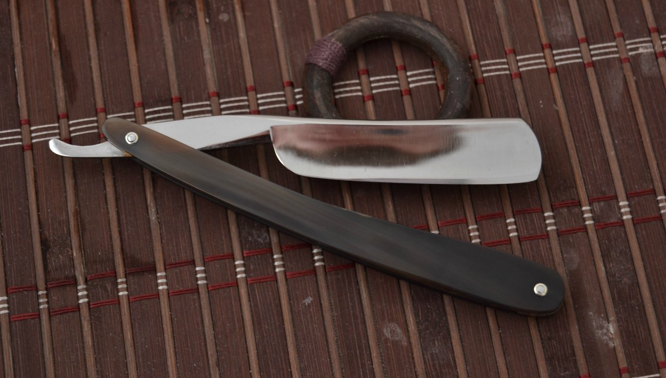 Английская бритва под торговой маркой Eclipse от Братьев Гилберт. Вогнутость 1/2, ширина 6/8. Необычная форма спинки. Новая ручка из рога буйвола насыщенной черно-белой расцветки. Рог очень высокого качества. В комплекте родной футляр гробиком в замечательном сохране. Заточена, готова к бритью. Продано Spoiler Show
