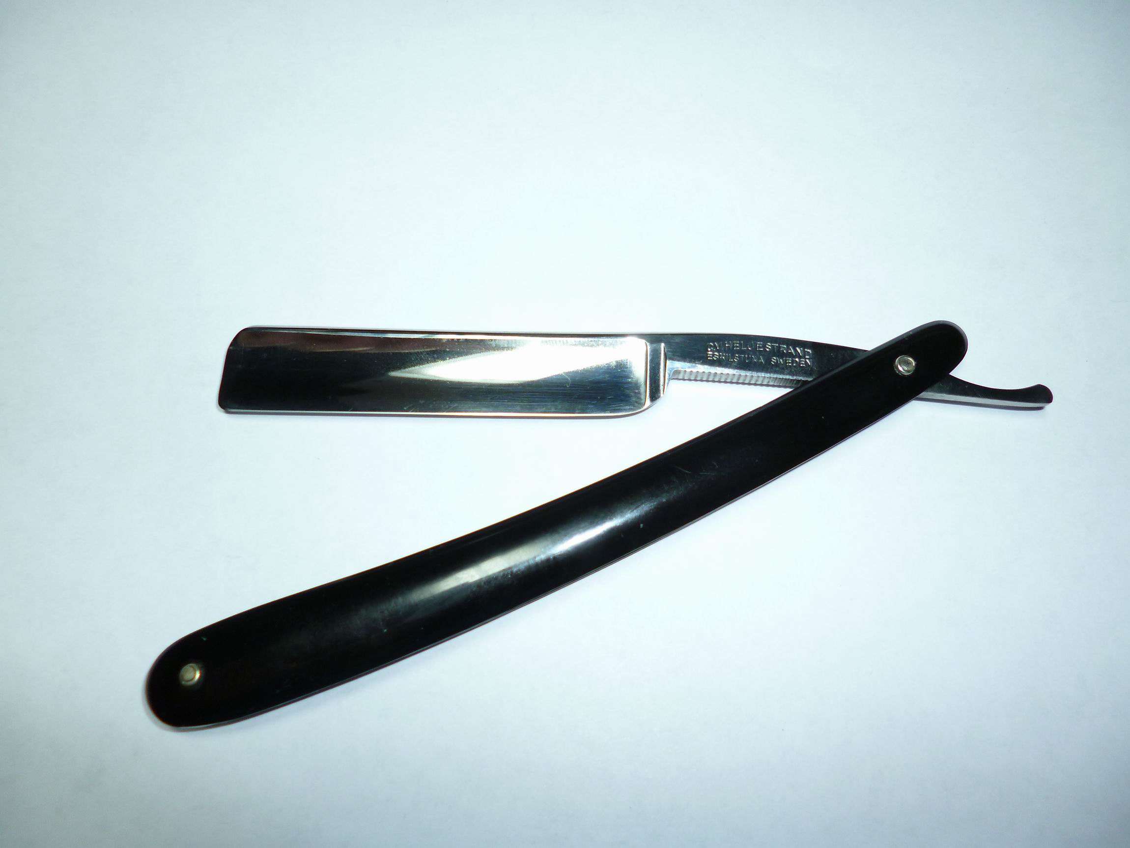 Надо было заказывать ТК. Доставили за 2 дня. На 100 рублей дороже почты раиссии. P.S. нагуры очень сильно пахнут известью. Не знаю хорошо или плохо. Добавлено спустя 2 часа 41 минуту 43 секунды: Как и обещал, небольшой отчет о знакомстве с натуральными камнями. Собственно нагуры. Справа налево: ботан, меджиро, кома. Наверное если сказать непосвященному, что эти три камушка стоят 5 тыщ, не поверят. Опробовал, кстати, каленое стекло 10мм, о котором писал неделю назад. Практически не царапается, в отличие от обычного, которое стало матовым уже после первого использования. Большой плюс - меньше риск, что в стекле застрянет осколок от камня (иногда бывает с капризными натуральными сланцами). Собственно вооружился всем необходимым и в бой двинулся. В качестве подопытного кролика - шведка C.V.Heljestrand №2. Spoiler Show Съем металла не заметил. Сналача подумал может что не так делаю. Взял в руки английский клин (с широченной кромкой), увидел таки наконец стружку. Ушпокоился. Попробовал поработать с камнем на ладони, в принципе довольно удобно. Камень узковат в профиль. Надо подставку придумывать. Финишировал на чистом камне. Завтра буду тестировать в бою.