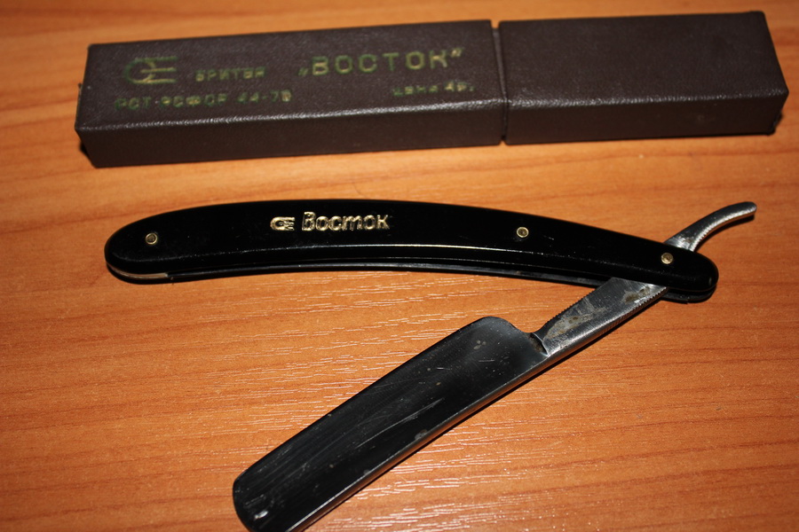 лезвие абсолютно чистое, немного точенное. Цена 800р, включая почту по РФ. Добавлено спустя 5 минут 41 секунду: Бритва "Восток" , 70 год, домик и бритва как новые, есть несколько пятен на лезвии. Надписи на ручке позолочены. Не чищена, в состоянии, как нашел. 1100р, включая почту по РФ. Добавлено спустя 5 минут 36 секунд: Еще один Восток, РСТ 81 года. Более поздний. Домик и бритва как новые, пара небольших пятен на лезвии. Надпись белого цвета. У среднего пина с одной стороны нет колечка. 1000р, включая почту по РФ.