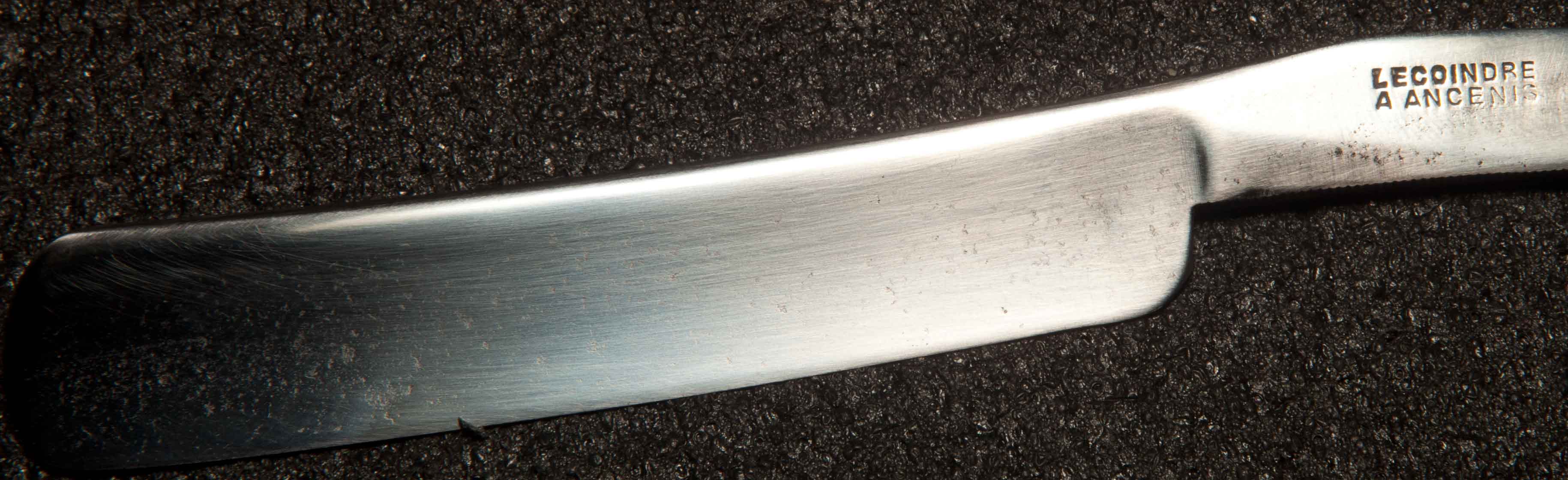 Re: Восстановление бритвыВпечатлен глазомером. Был уверен, что клинок ровный. Приложил штангель, обратная улыбка на миллиметр есть. Пошел искать темы на форуме про убирание улыбки и про обух, до этого был уверен, что улыбка убирается на этапе заточки. Re: Восстановление бритвыВзялся восстанавливать француза. Столкнулся с тем, что металл снимается на порядок сложнее, чем с трех бритв, которые я шлифовал до этого. Вертикальные риски, которые были на бритве, удалось убрать горизонтальными движениями бумагой 600 только через два полных часа интенсивной работы. И это только одна сторона клинка