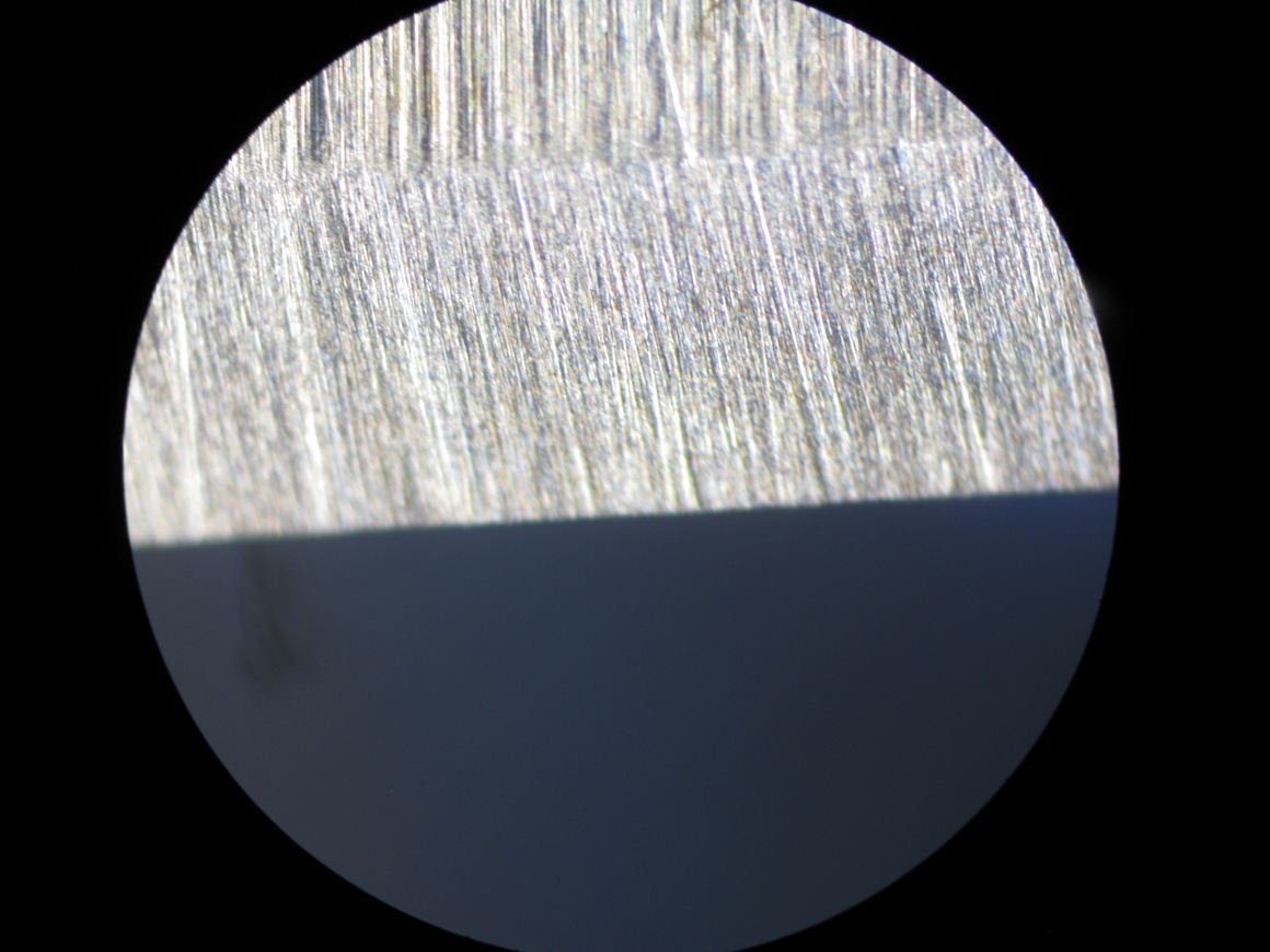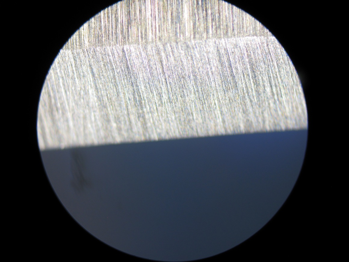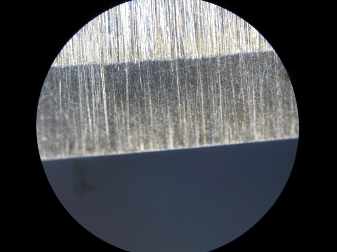 Итого: с использованием цусима-камня и цусима-нагура можно заточить бритву до состояния реза волоса на минимуме камней - 1000-цусима-финиш, но нужно следить за суспензией, хитрить и очень долго полировать кромку. Также отмечено постоянное микроскалывание кромки. Не ясно пока дело в бритве или в камне, но микропила держится постоянно и уходит только на финише. Зато для ножа это хорошо, поэтому тысячник+цусима-камень на кухню самое то. А для бритв надо покумекать как с ним быть, так-то камень достойный - быстрый, с однородным и тонким зерном - хорошая альтернатива котикулу и хватит надолго если не кокнуть, что сделать очень легко. А вот цусима-нагура отлично затирает риски на синтетиках до 6000 грит и может быть использовано вместо ботана. Но об этом потом - в следующем обзоре "о камне вакаса и его 5 друзьях". [spoiler=" фото кромки и самой бритвы после "цусима-гуанси-вакаса"] [/spoiler]