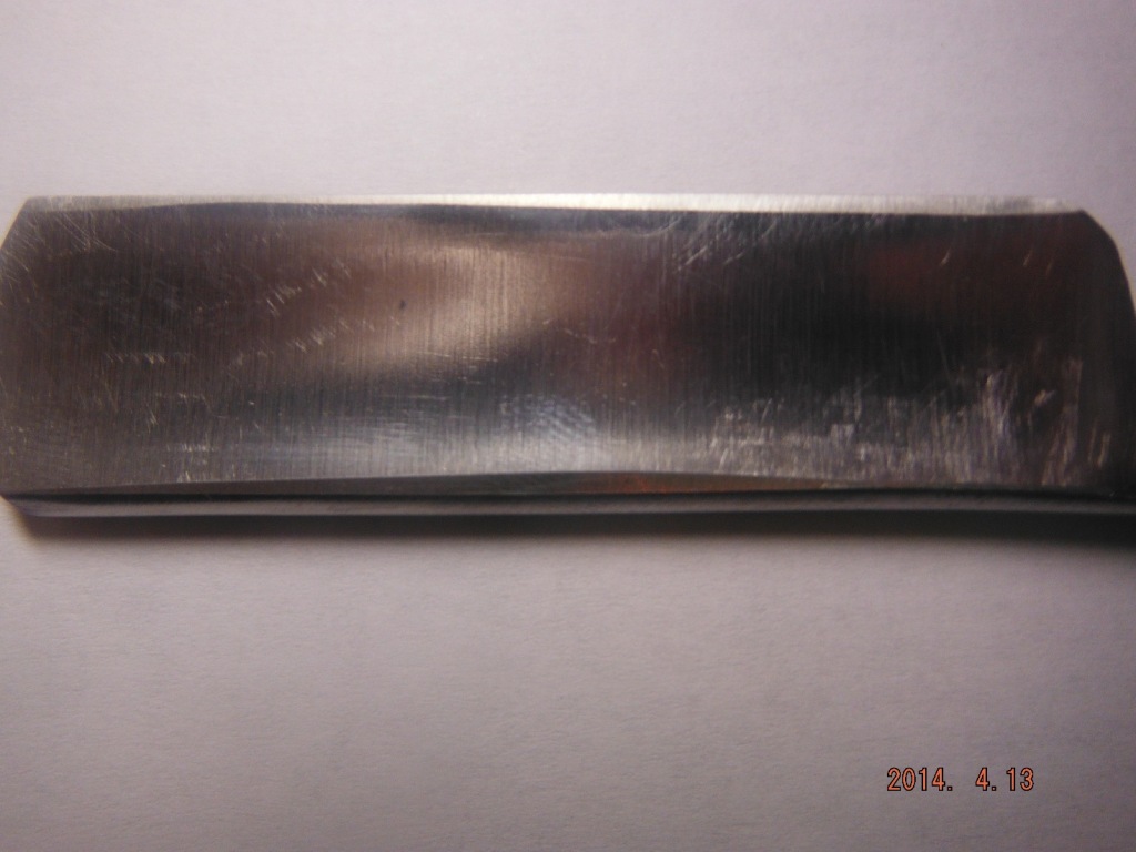 На 3000 долго шваркал, часов около двух, затем полчасика на 8000- надоело уже )) На РК с одной стороны образовалась ровная фаска, с другой стороны не совсем ровная ( фото), на ремне не доводил, пасты гои нет. На обушке также образовались фаски. Основной вопрос оставшийся не совсем понятным: нужно ли чтобы обушок был плотно прижатым к камню, или он какбы уже отрывается от него ? Если второе, то как этого добиваться ? Решил проверить остроту после своей "точки" и был немало разочарован: как не срезала волоски на руке до точки, так и после не срезает. Что не так ? Попутный вопрос: на какую часть ремня наносят посту гои- матовую или блестящую ? Или на ремень из холста ?