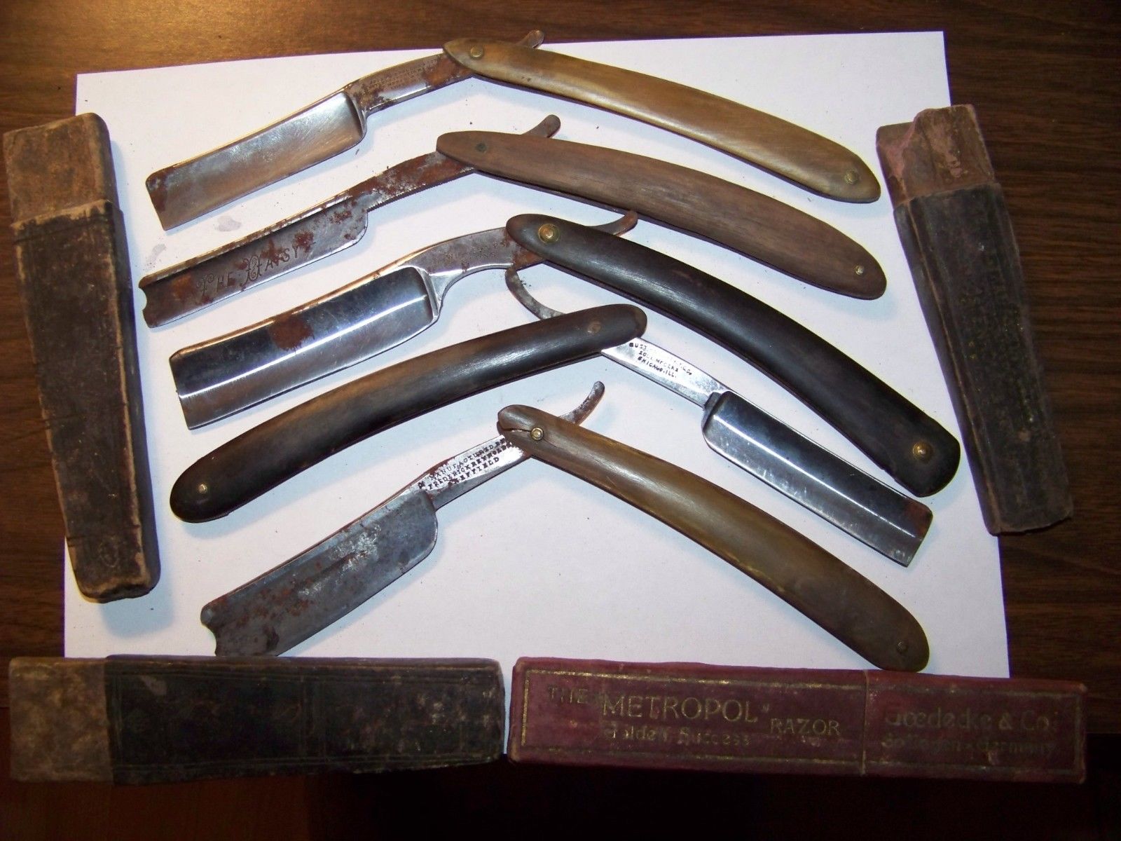 Re: КлиноманияТы клин то в глаза хоть видел? Все они заточены по умному, классически, без изолент и без изменения угла, если уж в руках не держал, так посмотри на фотографии коих куча на ебее - все они со "сточенным обухом" ибо бритва такой инструмент что обязан обух стачиваться, благо во времена бритья опасными бритвами это понимали, потому что их точили много и знали что после изоленты уже не заточить.