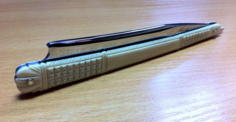 Хочу поделиться моими трудами с мамонтятиной (наконец руки дошли выложить), идея ручки подсмотрена с древненькой французской "масонки", правда пришлось поставить мамонта на алюминий, тонкие половинки ручки жили своей жизнью - сегодня могли выкрутиться в одну сторону, завтра в другую. Клинышек - олово. За фото не ругайте, делал на телефон.