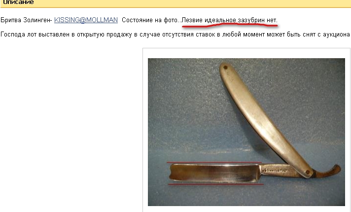 Re: Аукционы: плагиат, развод и "великолепные" описанияОсобого внимания заслуживает небезызвестный сайт http://www.britvasolingen.ru" onclick="window.open(this.href);return false;