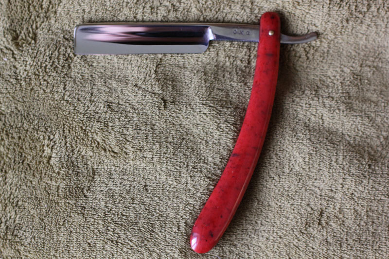 - Бритва деда ОКА 1966 г.в. реставрации. Тест на волос: растояние 0,5 см - срез, а в некоторых местах залом и подсекание.