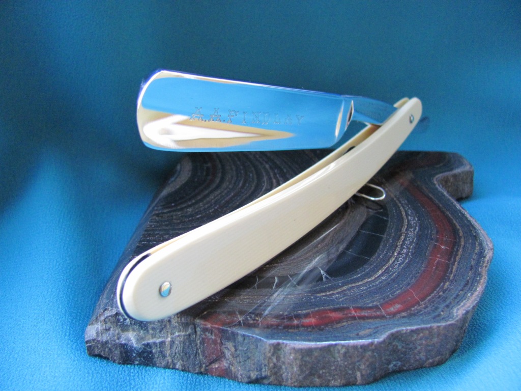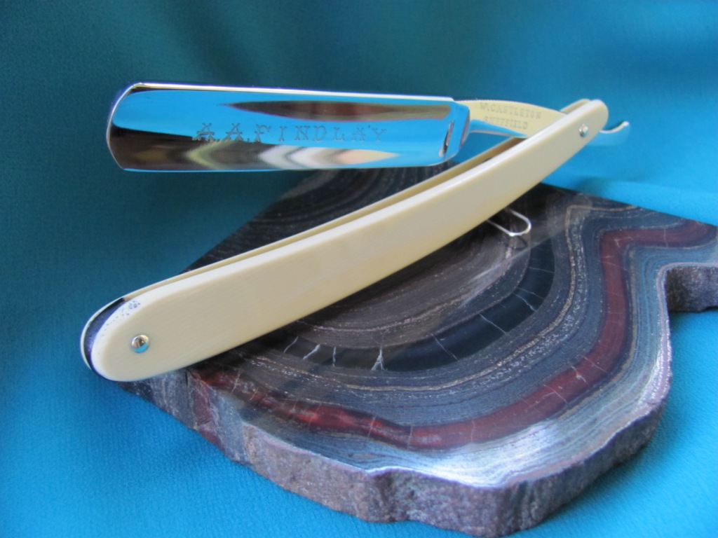 Производитель: W. Castleton. Sheffield На полотне надпись : A.A.Findlay Материал ручек: целлулоид. Размер бритв: №1 ширина 17 мм, обух 4.8 мм №2 ширина 15,2 мм, обух 4.8 мм Состояние: Близкое к идеальному, на одной из ручек, клинышек имеет визуальную деформацию, ни на что не влияющую, видимо время к нему оказалось не столь гуманным. Геометрия бритв идеальная. Заточены и готовы к бритью. Проданы A.A.Findlay Show