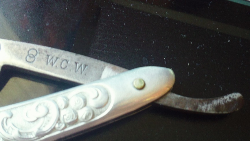 не копия, не подделка, не новодел. Хранится в семье с начала моей памяти. Ручка редкая, вроде как алюминий (было бы серебро, она была бы тяжелее и за столько бы окислилась). Красивое литьё (штамповка? уж больно точная...). Существует вероятность, что бритва может быть с крейсера "Рюрикъ", так как привезена с Дальнего Востока. В сети есть упоминания про два кольца и W.C.W. - но нигде так и не нашёл точного названия производителя или расшифровки данной абревиатуры. Если фирма немецкая, то почему надпись на старорусском? Причём сама надпись очень качественная, явно фабричная. Прошу прощения за качество фотографий, нет под рукой нормального цифровика. Да и что под каким ракурсом снимать, я был не в курсе...