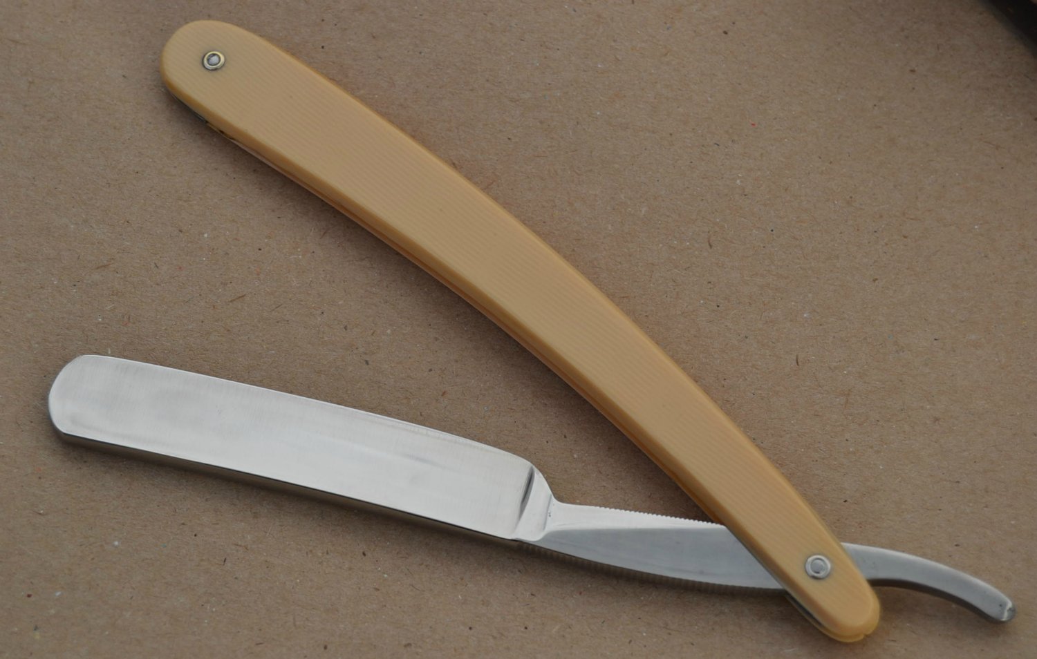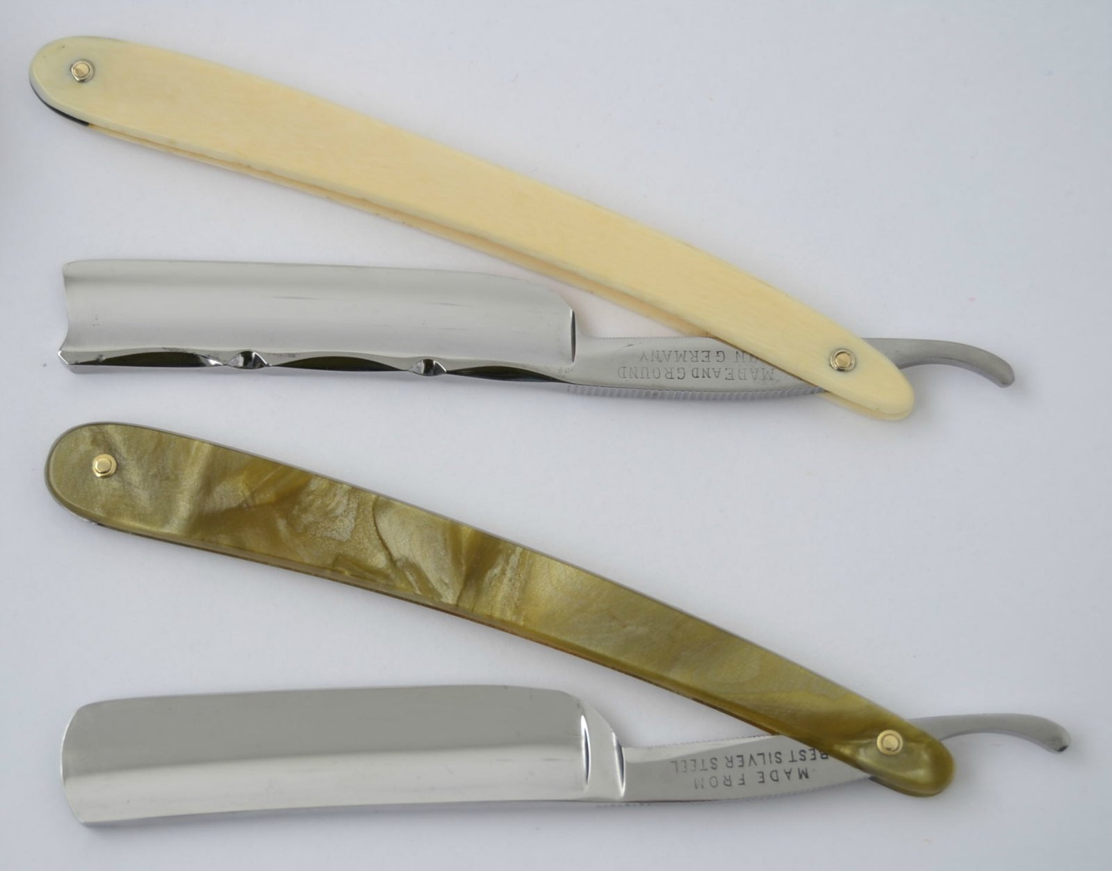 На одной Рукоять из слоновой кости, на другой целлулоид. Бритвы изначально не были в комплекте, но мне достались вместе, именно в этом футляре, поэтому и продаю тоже вместе. Бритвы отлично заточились, хорошо проходят тест на рез волоса сразу после камней. Рукоять из слона продолжает жить собственной жизнью, вчера после ремонта закрывалась ровно, сегодня после заточки стала закусывать. Целлулоид тоже закрывается не совсем ровно, хотя и не закусывает. ПРОДАНО. Так же могу продать по отдельности. Spoiler Show