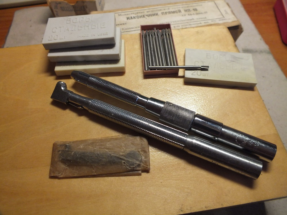 1. Наконечник стоматологический прямой. 2. Наконечник стоматологический угловой. 3. ЗИП. 4. Буры стальные для прямого наконечника конические 80 шт. 32 года активно мусолю харю клинковой бритвой