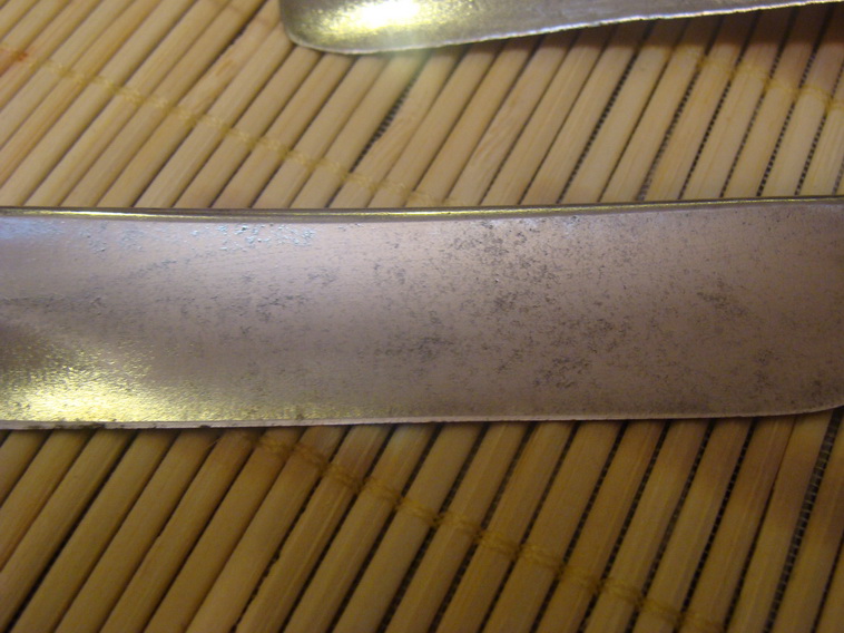 Изначально, она была черная вся и царапаная чем то очень грубым, вроде как оттереть пробовали. Но на воронение это не похоже, пятнами всё и неравномерно.
