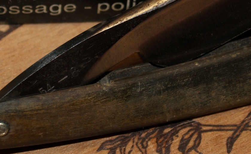 1. Огромный ноунейм француз в роге. Рог очень тонкий и, видимо, старый. Текстурный такой. Есть на нем небольшие сколы и его хочется полирнуть. Как лучше убрать сколы, чтоб не повредить рог? Наждачкой, руками? Чем и как лучше полировать? И еще, вот на фото хорошо видно это место - в раойне пятки внутри ручки есть износ совершенно не там, где он мог бы быть. Ручка переставлена с другой бритвы?
