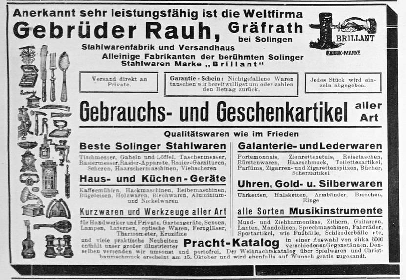 Нет, не так там написано. Братья Раух, Графрат Золинген. Последняя H читается, Графрат - часть города Золинген.