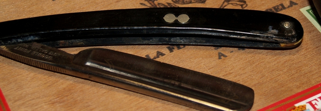 1. Огромный ноунейм француз в роге. Рог очень тонкий и, видимо, старый. Текстурный такой. Есть на нем небольшие сколы и его хочется полирнуть. Как лучше убрать сколы, чтоб не повредить рог? Наждачкой, руками? Чем и как лучше полировать? И еще, вот на фото хорошо видно это место - в раойне пятки внутри ручки есть износ совершенно не там, где он мог бы быть. Ручка переставлена с другой бритвы?