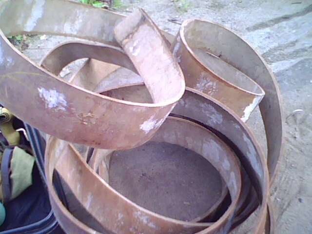 Сегодня на барахолке наткнулся на полосу кожи, длиной метров 10. Состоит из кусков длиной примерно 80 см, концы сработаны на клин, склеены... Толщина 5 мм, ширина 65 мм. Взял 3 метра...прозапас. Мой широкий в прошлом году намок и умер. Попробую поработать наждачкой и сделать достойную ему замену...  Вот только что под ручки приспособить....