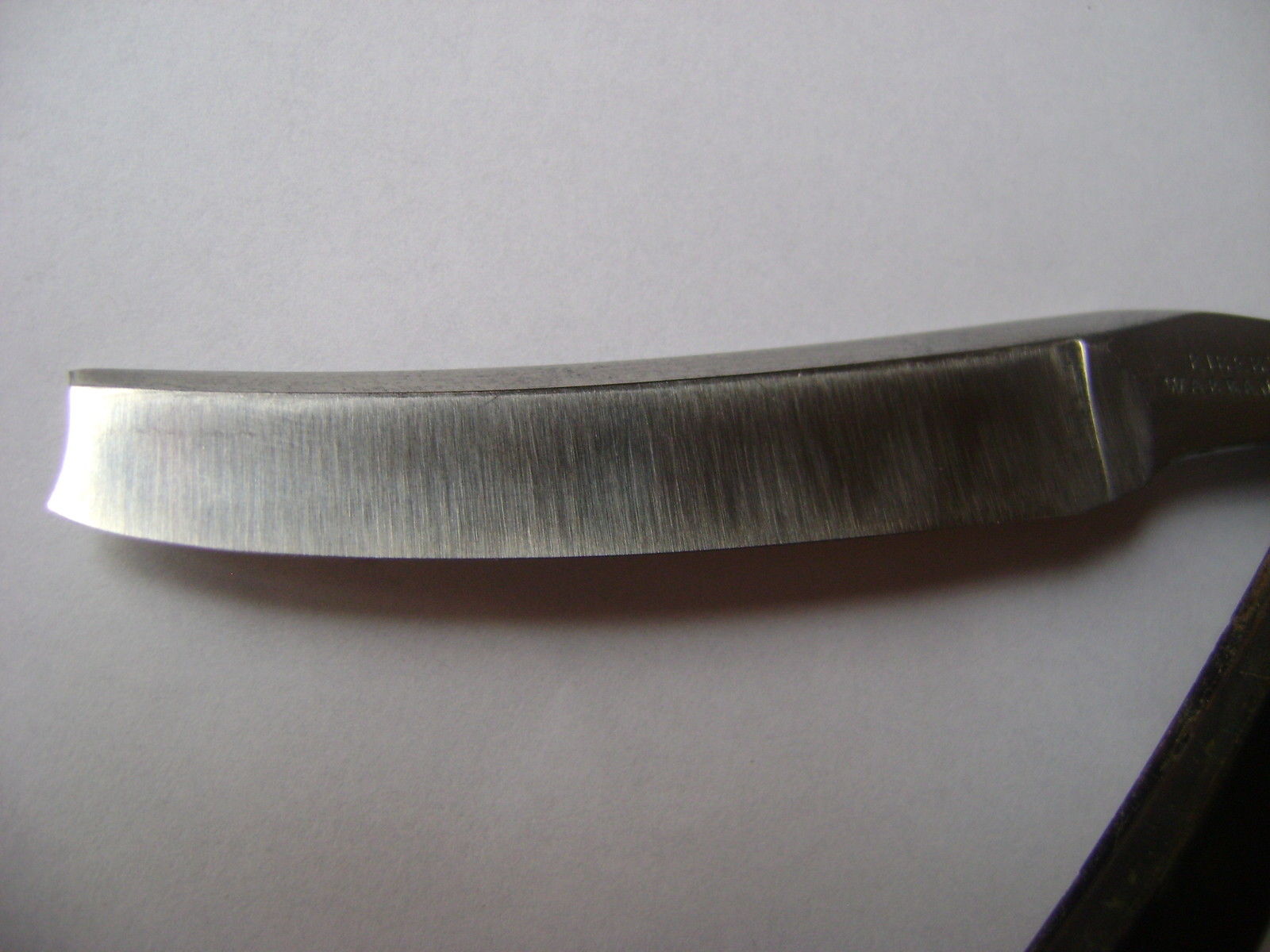 Дико обточена. Разница в состоянии между бритвой и ручкой - налицо. Потом - заполирована. Спинка потому и кажется несточенной, потому что по диагонали наждаком обрезана. А пятка варварски наискосок срезана. Видимо, перепродается не один раз. На ЕБАе выдается за Sheffield, England. А ЗДЕСЬ шведы пишут, что ихняя Eskilstuna. Прошу обращаться ко мне на "ТЫ". На "ВЫ", только, если хотите со мной ругаться, либо пытаться в общении со мной повысить своё ЧСВ.