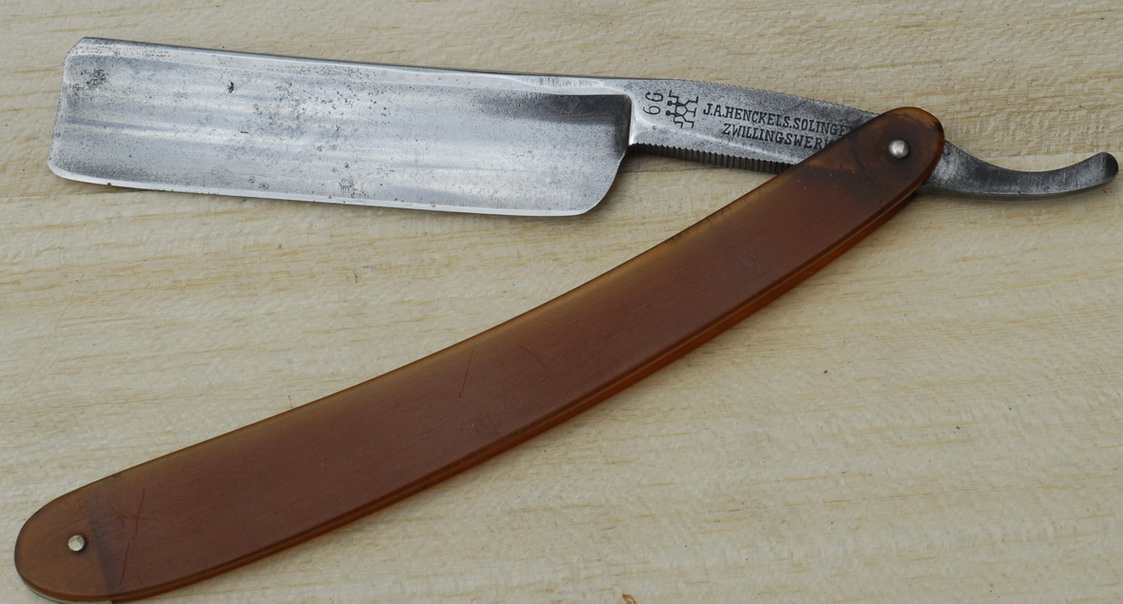 Набрел на такой Хенкельс №66. Очень большая бритва. Ширина 23мм, толщина обушка 6.3мм. Жаль только ручка не родная.