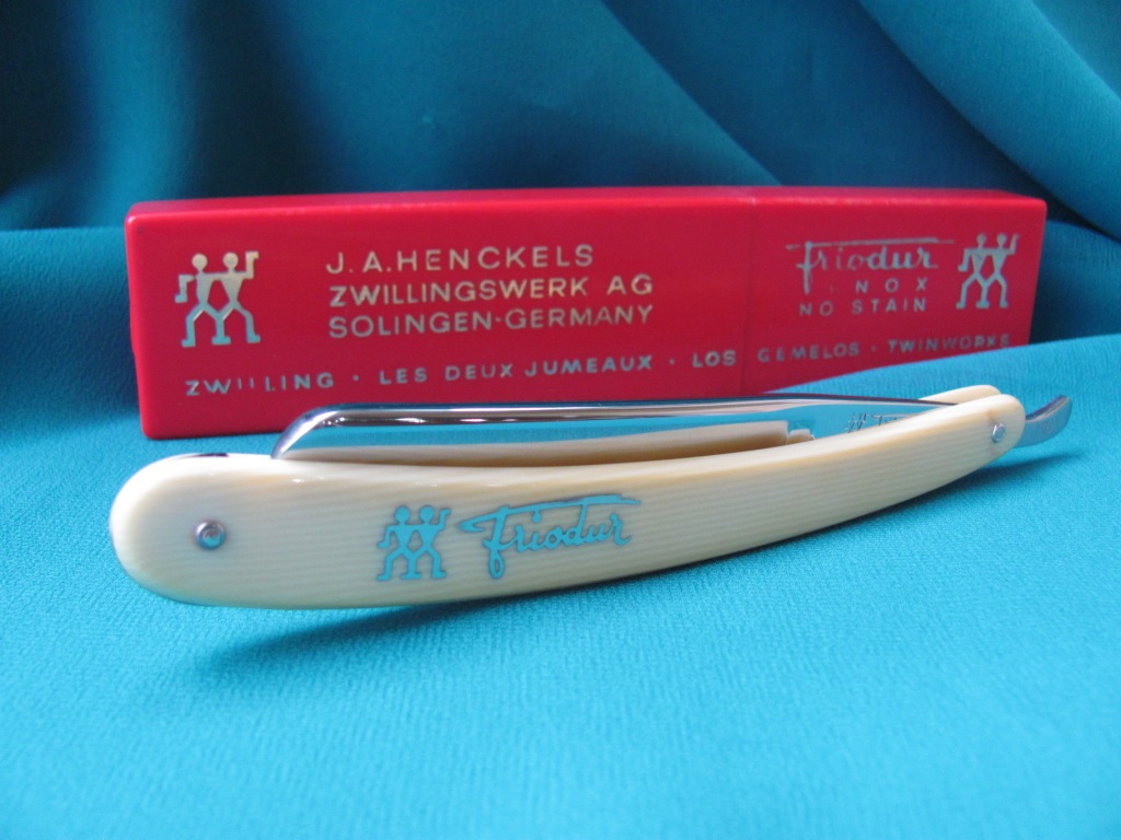 Размер полотна 15 мм, обух 4,5 мм. Ручка -пластик, родной кофр в комплекте. Бритва новая, не точеная ( заводская присутствует), продается как есть , из упаковки. Заточка в подарок по желанию покупателя, но есть возможность первой ночи у покупателя, так что точить не стал пока. Цена: Продана Jowika Show Re: Продаётся от N*X*SJ.A.Henckels , Friodur, inox no stain забираю.