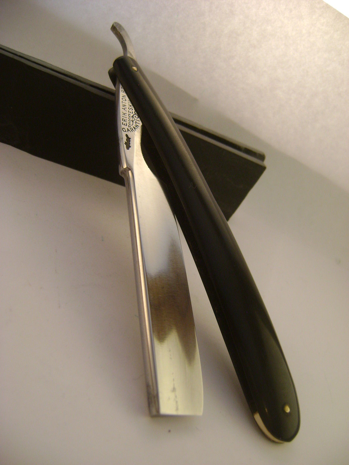 уралец: Что за производитель Erik Anton Berg? Предложили старую бритву от него,ручка ,похоже, неродная ,но само лезвие в очень хорошем состоянии, без всяких следов ржавчины, но и следов предпродажной подготовки нет, лезвие темное. На лезвии ряд (Штук восемь) золотых медалей и четкое клеймо рыбы,видимо акулы. Ширина лезвия ,скорее всего, 6(8 дюйма Может кто подсказать. что это зв бритвы, то в поиске не нашел?