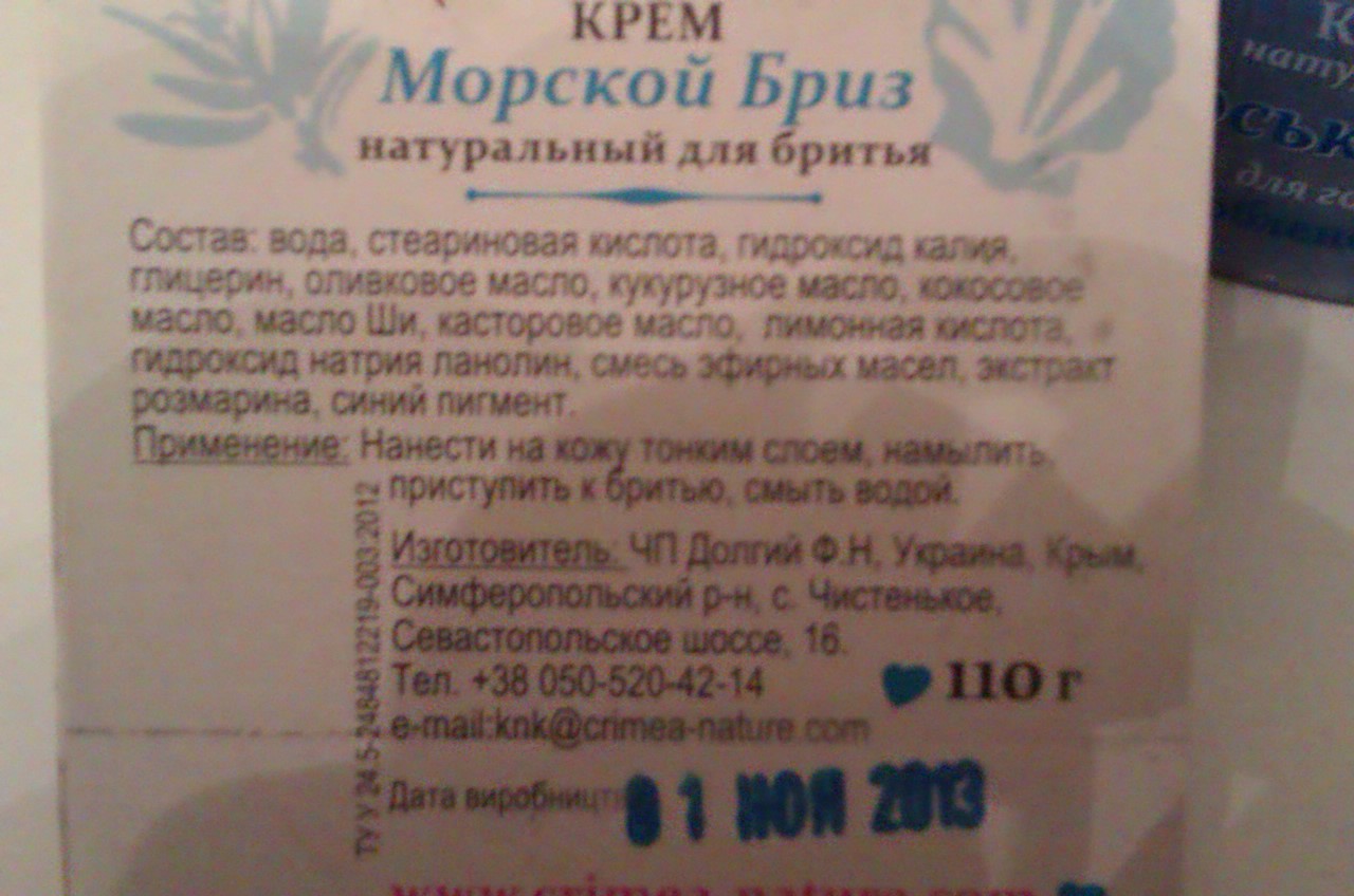 Прикупил Крем для бритья "Морской бриз" производства Крым из натуральных компонентов