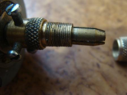 Пользовался долгое время своим микромотором с цанговым патроном, но со временем появился люфт, самопроизвольное освобождение инструмента и т.д. Слегка напрягало периодическое поджимание цангового патрона. Поверхностная ревизия вскрыла неисправность - сожрало резьбу в цанговом патроне. О причине догадываюсь. Изначально моторчик был с повреждённым концом вала и помню, как проблематично я центровал патрон.