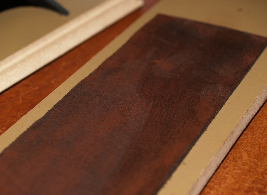 Re: Изготовление ремней для правкиРешил изготовить пастированный ремень по принципу "кожа на доске". Кожа под пасту вроде как не принципиальна, поэтому взял черную шору, которая была в хозяйстве. Слегка шлифанул ее наждачкой 600. Стал наносить красный диалюкс (везде написано наносится легко), а он как то не особо здорово наносится. То есть вроде и наносится, но неравномерно. Пробовал растереть тряпкой. Почти оттер всю пасту с ремня ) Нанес снова, попробовал растереть уже тряпкой с норковым маслом. Размазывается значительно лучше, но если много тереть, опять же паста вся в тряпке остается. На фото результат трех таких итераций.