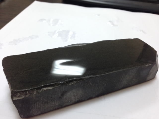 Маленький от деда достался, сероватого оттенка темнее гуанси, мягкий суспензия серая, второй черный, сменял, старый хозяин говорил, что он твердый (в сравнению с бельгийским сланцем) еще, говорил, что после него бритва проходила тест на волос у самого пальца. Черный вроде как тоже старый, по словам бывшего владельца попал в руки с большим седлом, по бокам видны грубые пропилы, есть у меня бразильский сланец, так он тверже этого черного, гуанси тоже его тверже. Re: Помогите определить каменьНадо было еще газетой сверху накрыть и так сфотографировать - точно бы опознали