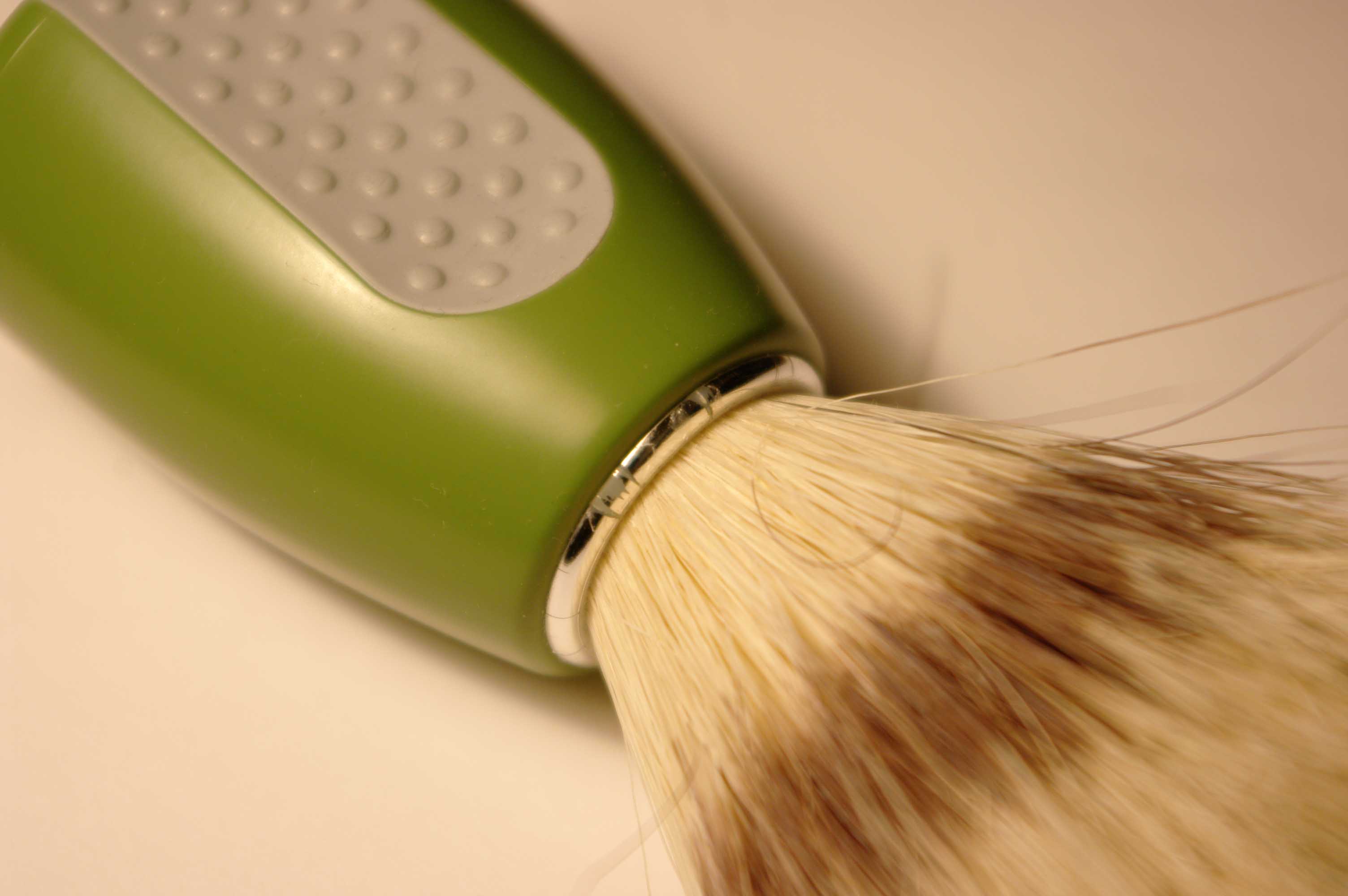 Вот выкладываю господа эксперты своего Chernobyl hedgehog  . Что касается ухода за ним я не думаю ,что я его обделил в данном аспекте . Стряхиваю его над клеёнкой слышно как остатки влаги ударяются о неё . Таким образом можно понять более менее стряхнул или нет . В кипятке не варю его единственное у меня нет подставки . По поводу промывки получается ,что он промывается каждый раз после использования так как я не использую пену . А применяю дегтярное мыло . Сдаётся мне это не трабл изготовления или качества . А скорей изначальный недочёт . Так как вода разопрёт ,что угодно не говоря о какой то шевелюрестой пластиковой кисточке . Могу предположить следующее . Скорее всего щетина разбухает и усыхает каждый раз при использовании .Растягивая пластмассу . Снижая таким образом удерживающую силу , тех самых волосков . Скорей всего лучше было бы деревянную ручку взять хотя не факт ,что она была бы лучше . Перед изготовителями стоит трудная задача с одной стороны нужно крепко закрепить шевелюру а с другой стороны нужно не дать воде разнести крепёжный узел . У меня ешё есть помазок из синтетической щетины его использовать ешё не пробовал . Не знаю как он будит пену взбивать . Догадываюсь ,что хуже . Так как это не muhle pinsel а индия за 50р. Вот на этих фото можно разглядеть эти пресловутые трещины . Одна даже пошла по рукоятке . Если приглядеться можно разглядеть на фото №2 трещина чуть темнее . Печально так как помазок с удобной ручкой .