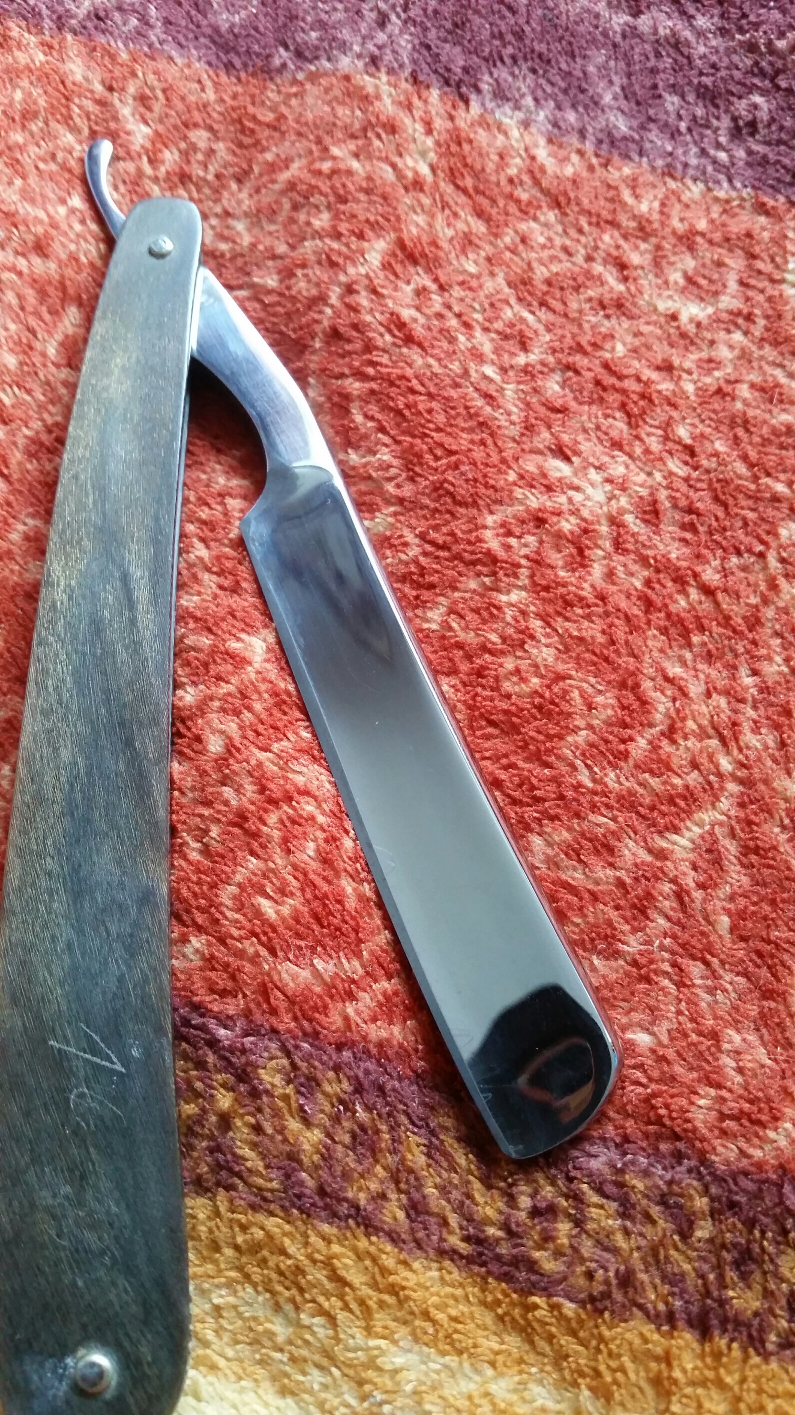 Опасная бритва ERN 17 Wald-Solingen, сделана в Германии в г. Золинген, ширина полотна 15 мм, все родное, футляр от другой немки, ручка металлическая (но баланс хороший, в отличии от советских медицинских бритв), профиль близок к клиновидному. Вручную почистил и заточил. Подготовлена мной к бритью. Бритва выпущена одной из самых известных фирм - ERN (клеймо корона с саблей), видимо для медицинских целей, при этом бреет просто отлично. Цена - руб. К бритве рекомендую приобрести ремень для правки опасных бритв моего изготовления из итальянской кожи (подробнее на странице 4, объявления 56-58). Spoiler Show