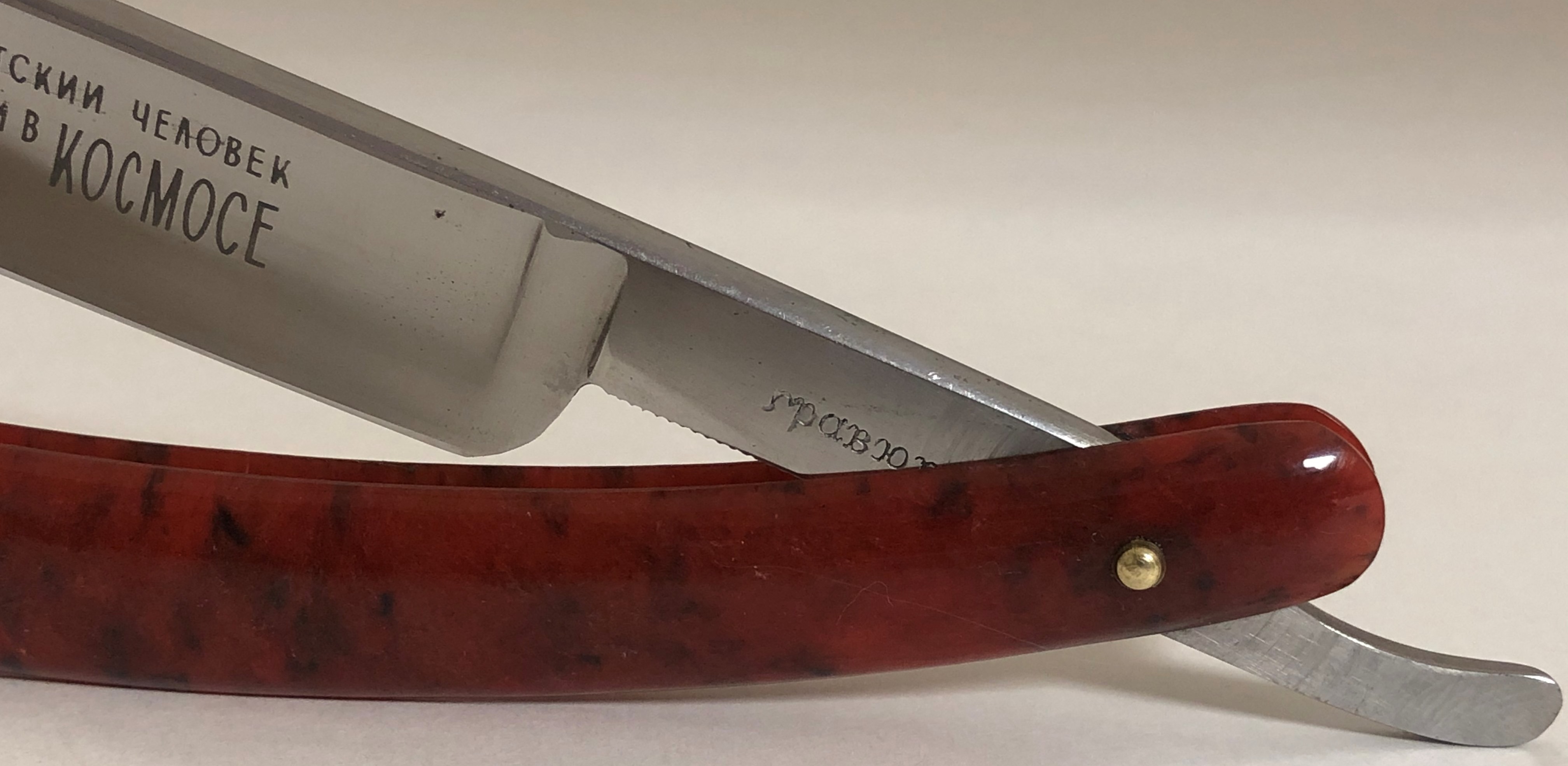 Бритва очень хорошо сохранилась, без критичных дефектов и наверное малопользованная, судя по неуточенному обушку..Была разобрана, немного почищена , отполирована и снова собрана, с сохранением родного пина. Кромочка идеально ровная.(Немного уточен носик, в результате неправильно заточки предыдущими владельцами. Но, практически незаметно и ни на что влиять не будет.)Приятная бритовка во всех отношениях. Будет удобна не только в качестве бритья, но и для коррекции усов и бороды.Не пропустите отличную вещь, за недорого, практически по цене советской.
