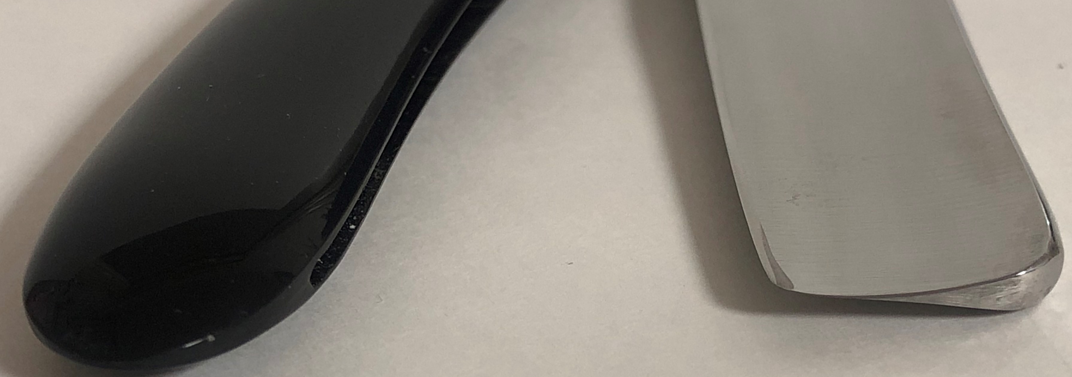 Никаких видимых дефектов не заметил. Все ,как вчера с производства.Элегантная форма клинка, в массе своей несвойственная японским бритвам, в виде тонкого эрля, широкого полотна, с глубокой выработкой .За счет толстого обушка бритва достаточно тяжёлая, что даёт возможность чувствовать ее в руках, при бритье и не резаться часто.Идеальная форма клинка:кромочка равномерна по всей длине и практически незаметна.Отличная "звонкая" сталь способна выдавать качественное и мягкое бритьё. Заточена и готова к бритью.