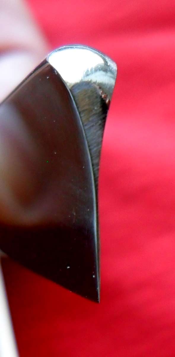 Ручка и пины родные, без проблем. На бритве довольно необычная сталь, заточка потребовала массу времени. Я так понимаю, что сталь высокой твердости, раньше я встречал только 1-2 бритвы со сталью такой твердости. В бритье неплоха, мне понравилась немного больше, чем пара моих прошлых советских бритв 60-х годов, хотя и те были неплохи. Естесственно, заточена и полностью готова к бритью. Также к бритве идет родной чехол в неплохом состоянии. Ширина полотна 17,5 мм, толщина в обухе 4,5 мм.