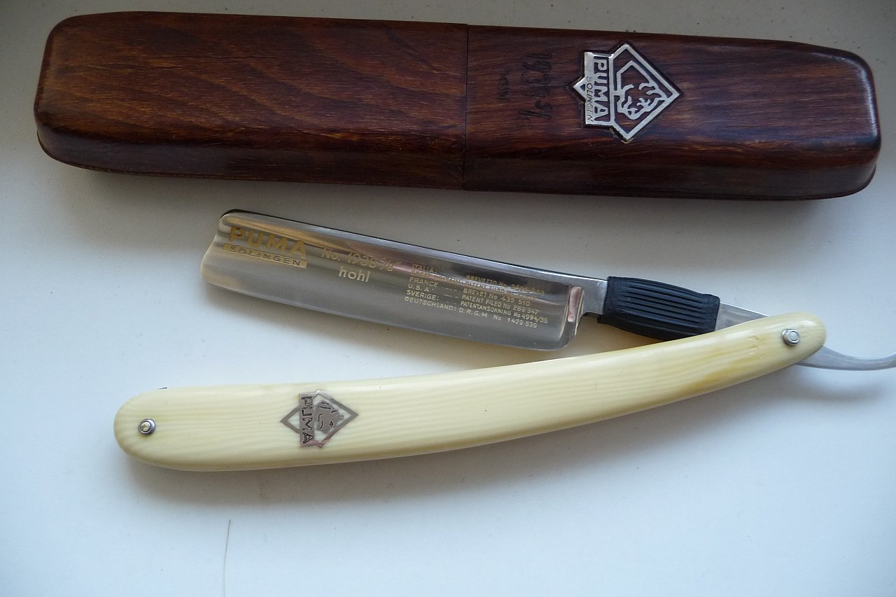 Начал искать инфу и вот что обнаружилось, у фирмы PUMA есть торговая марка Pumetto в названии присутствует две буквы t, на моей же бритве буква t одна. Итак вот что удалось скромно узнать: фирма производила бритвы, лезвия к Т-станкам, карманные ножи ( на фото ножи с перламутром и серебром на ручках), а так же холодное оружие для войск Вермахта.