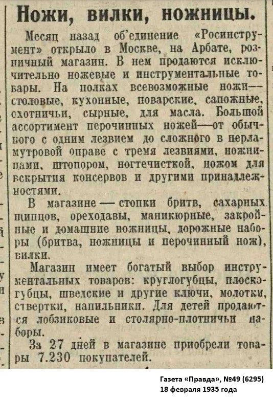 Вот как! Магазин на Арбате, бритвы стопками!)) Январь 1935 года