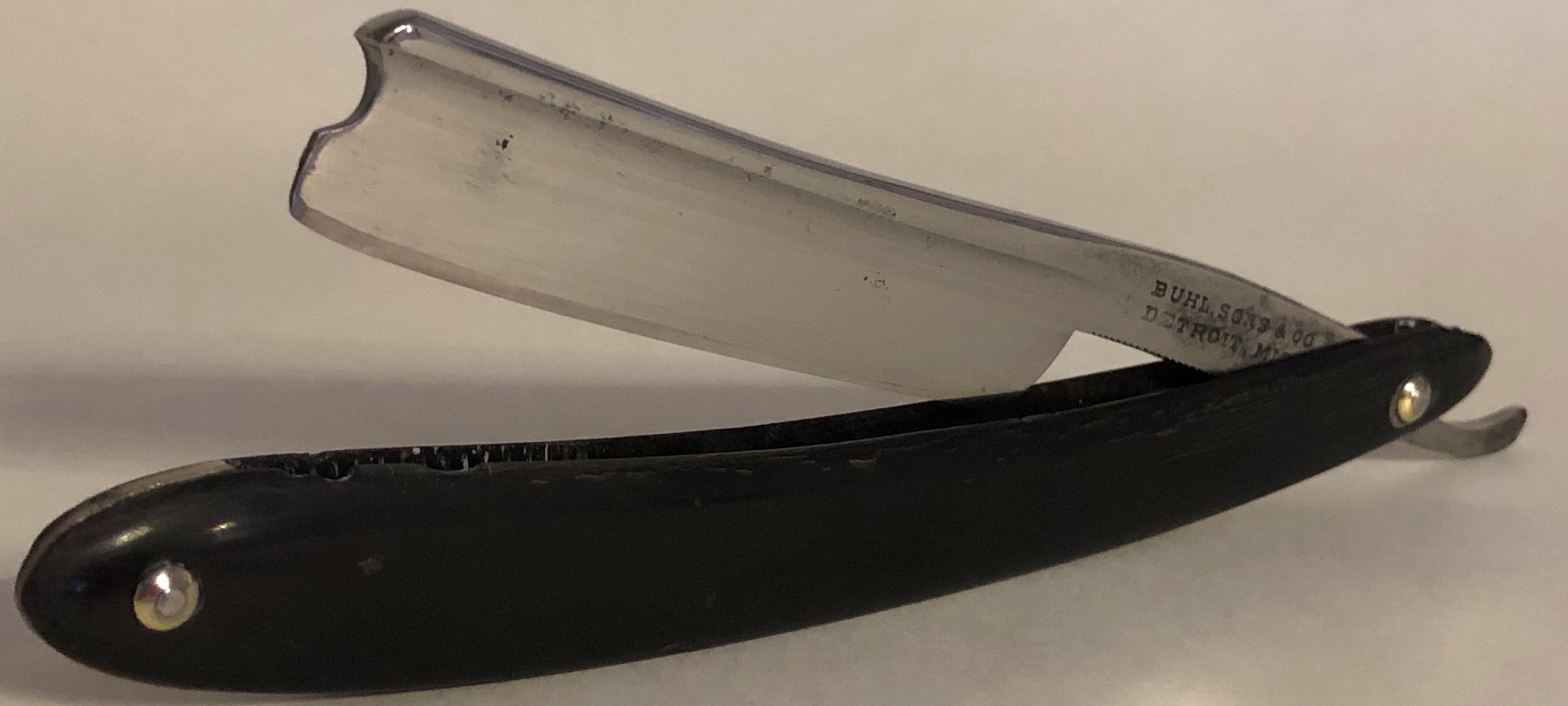 Давно хотелось поработать с этим древнем клиночком, который лежал у меня долгое время, но все руки не доходили.Не часто видел вот такие формы на американских бритвах.А тут еще раскопал из своих закромов такую старинную роговую французскую оправу,из натурального рога.Ну и как то все само собой сошлось. Клинок оставил с элементами патины на эрле.Продольный сатин на полотне до 800 грит.Умеренная полировка.Геометрия на уровне.Поставил вот такие сферические немецкие шайбы.Заточена и готова к бритью. Не пропустите бритву ,за совсем небольшие средства,практически за стоимость советской.